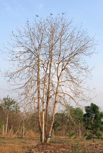 หลังจากย้ายมาอยู่ เราปลูกไม้ยืนต้นเป็นสิ่งแรก เนื่องจากมันใช้เวลาหลายปีกว่าจะโต เราปลูกพันธุ์ไม้ป่า มากกว่า 15 ชนิด รอดจนถึงตอนนี้ 70 ต้น ส่วนใหญ่เป็น ต้นประดู่ป่า มะค่าโมง สักทอง ประดู่แดง สะเดา ปีบ เริ่มปลูกจากต้นกล้าสูง 1 คืบ ตอนนี้ต้นสูง 0.5-5 เมตร ไม้เนื้อแข็งบางอย่าง เช่น มะริด พะยอม บุนนาค โตช้ามาก แต่ก็ไม่เป็นไร เราปลูกคละกันไป ให้มีความหลากหลายเหมือนป่า สิ่งที่สังเกตุได้ชัดหลังจากไม้ยืนต้นโตขึ้น คือ มีนกมาอยู่อาศัย และฝักไข่อีกด้วย